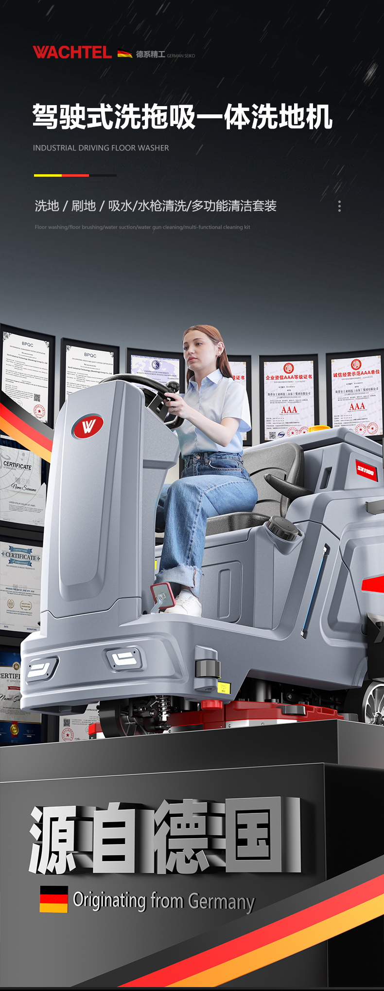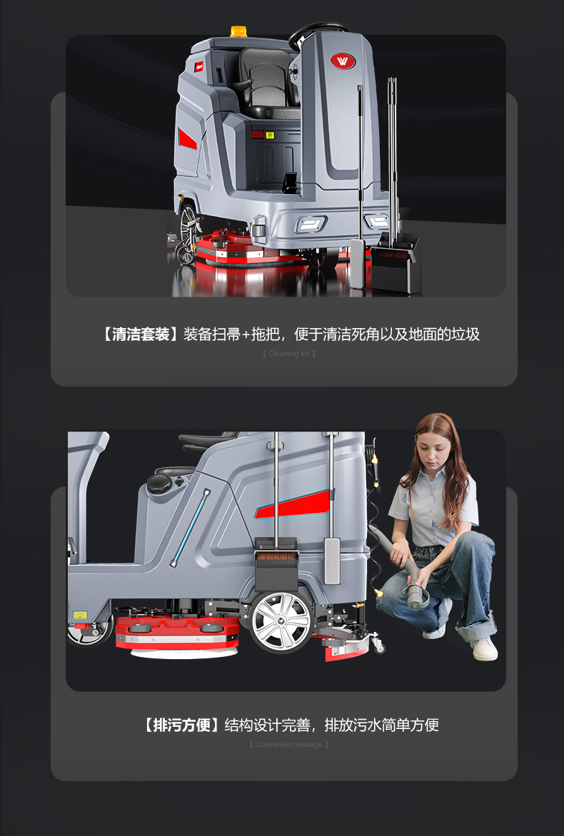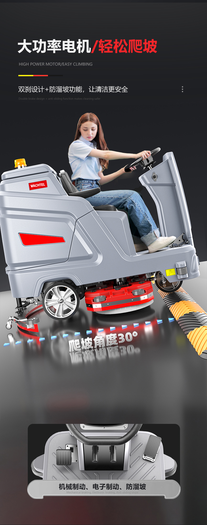品牌:WACHTEL 名稱:大型駕駛式雙刷洗地機 型號: SX1100 清掃寬度:950mm 清潔效率:8800m²/h 工作時間:4~5h 水箱容量:185L/154L(清/污) 電池:意大利OM鋰電 電機::德國瓦赫電機 整機重量:370kg 產品尺寸:1660*1130*1380mm 適用清潔場所: 商場 超市 車庫 車間 辦公樓等