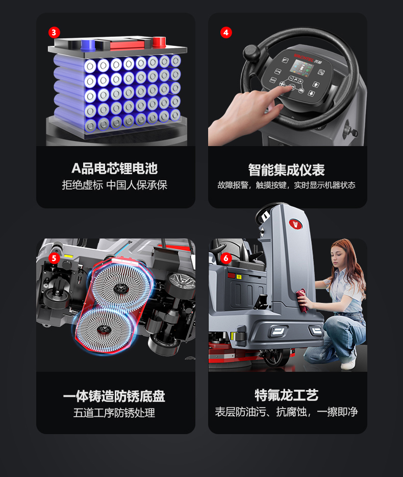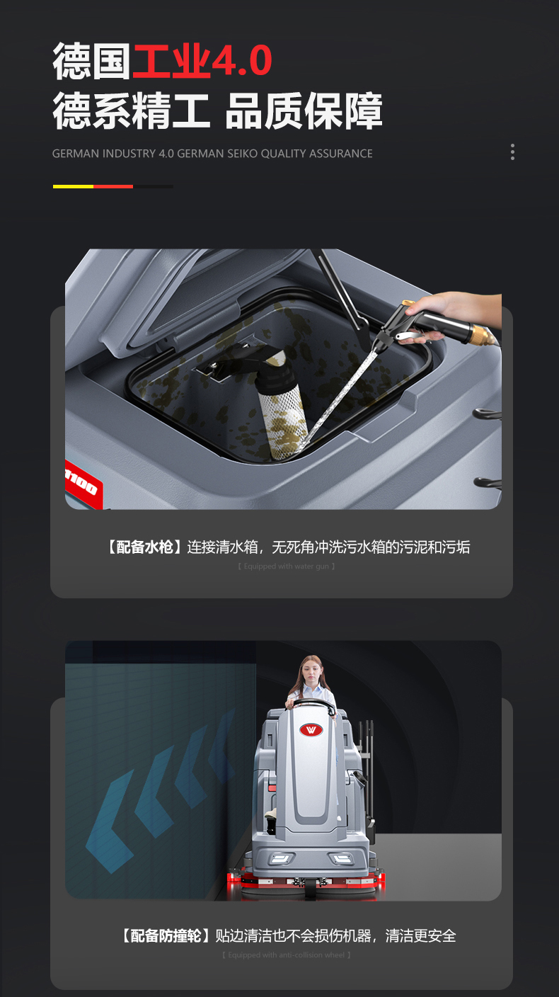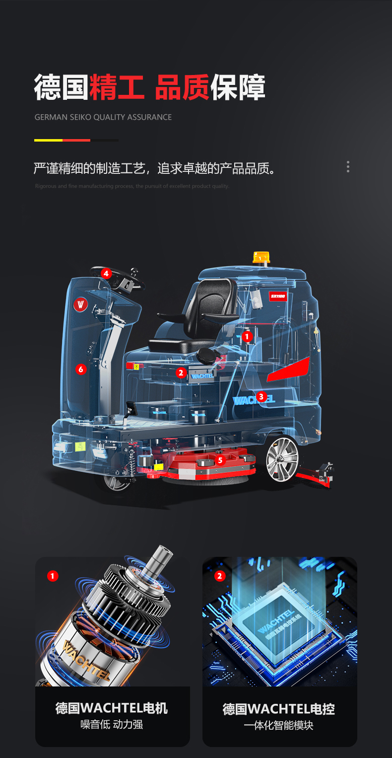 品牌:WACHTEL 名稱:大型駕駛式雙刷洗地機 型號: SX1100 清掃寬度:950mm 清潔效率:8800m²/h 工作時間:4~5h 水箱容量:185L/154L(清/污) 電池:意大利OM鋰電 電機::德國瓦赫電機 整機重量:370kg 產品尺寸:1660*1130*1380mm 適用清潔場所: 商場 超市 車庫 車間 辦公樓等