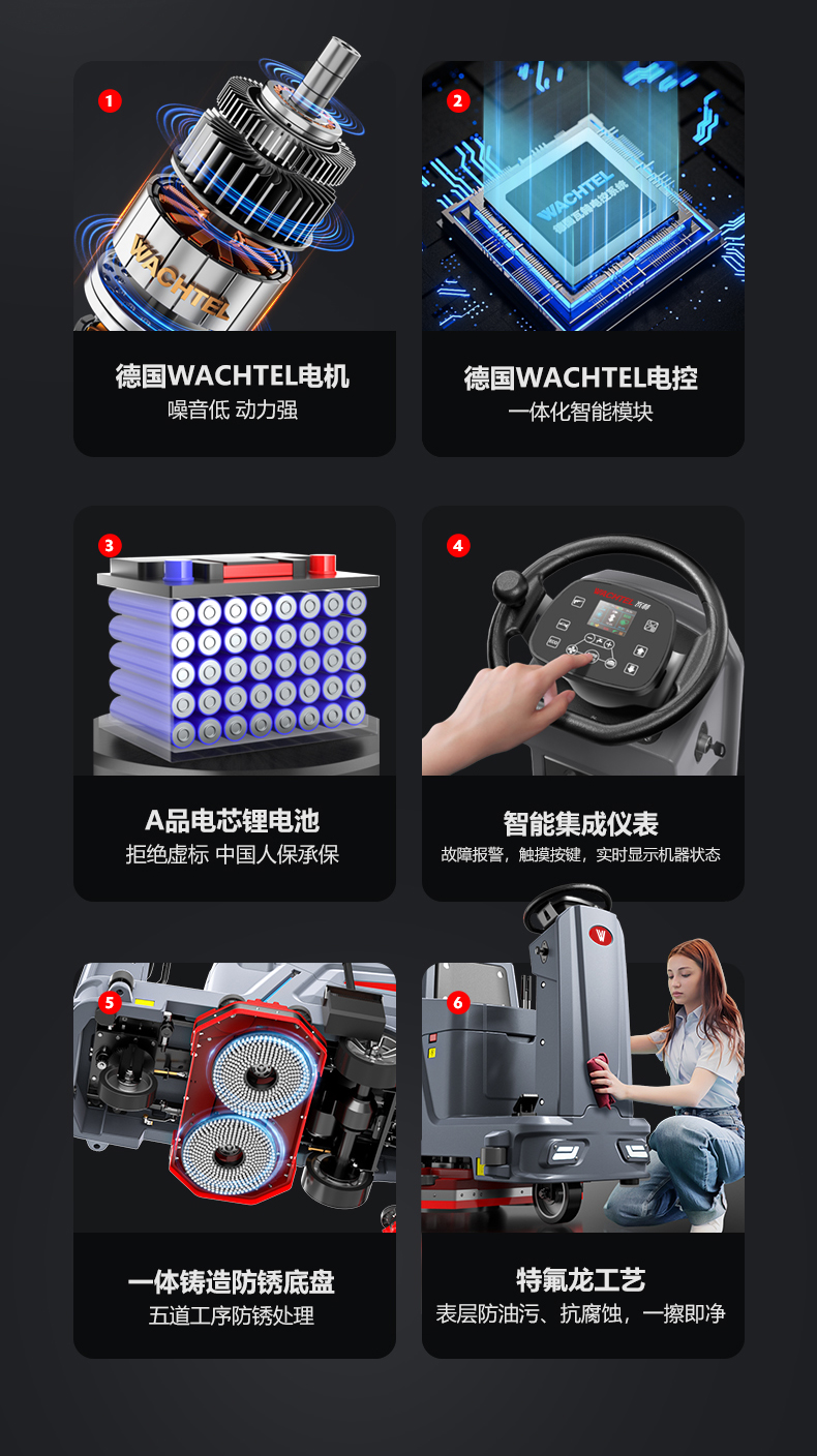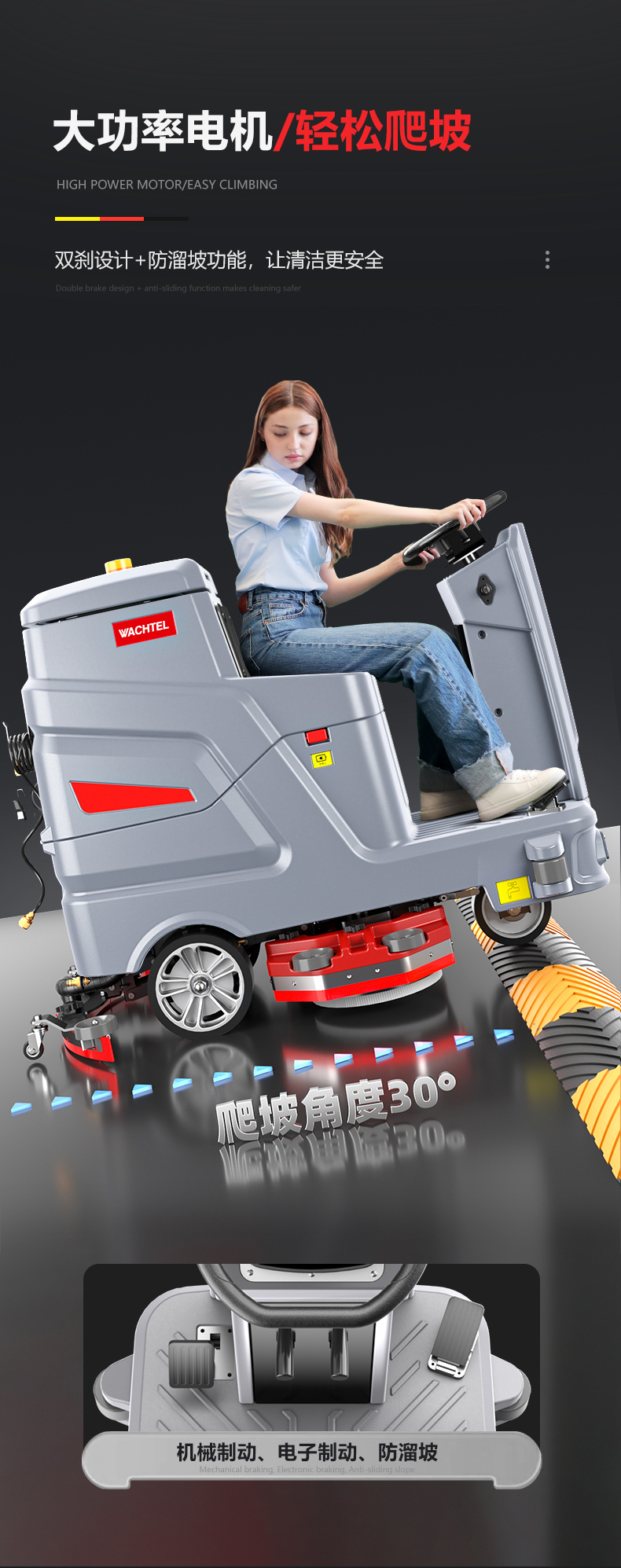 品牌:WACHTEL 名稱:小型駕駛式雙刷洗地機 型號: SX750 清掃寬度:750mm 清潔效率:4900m²/h 工作時間:3~4h 水箱容量:110L/120L(清/污) 電池:意大利OM鋰電 電機::德國瓦赫電機 整機重量:225kg 產品尺寸:1460*1000*1170mm 適用清潔場所: 商場 超市 車庫 車間 辦公樓等