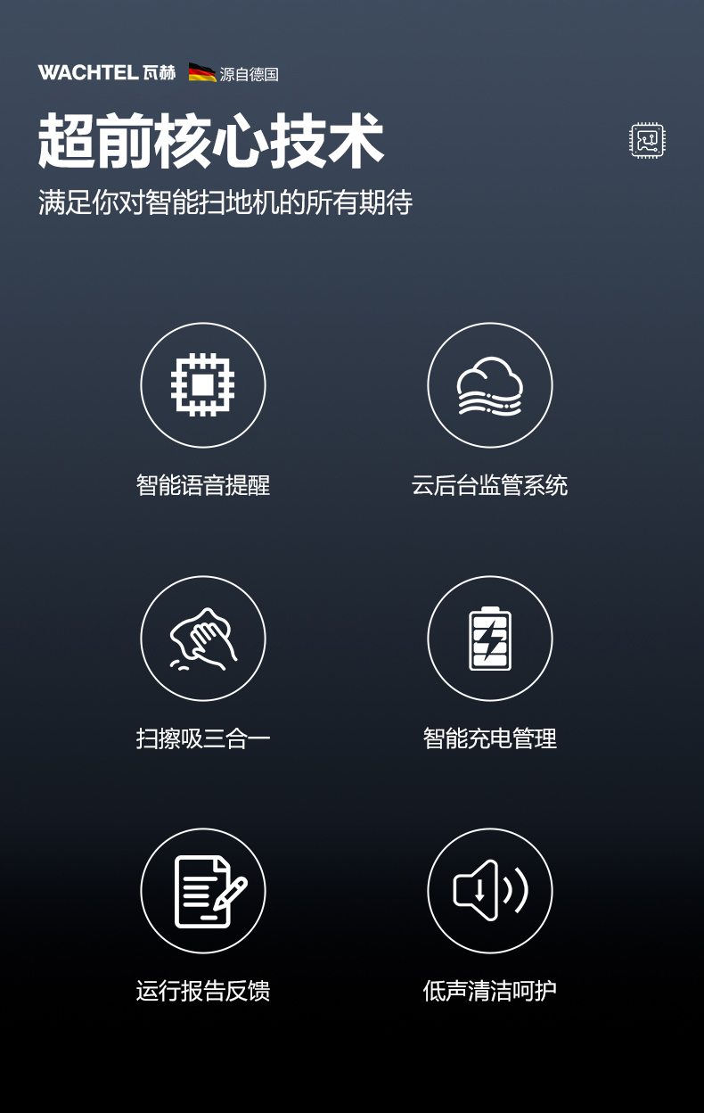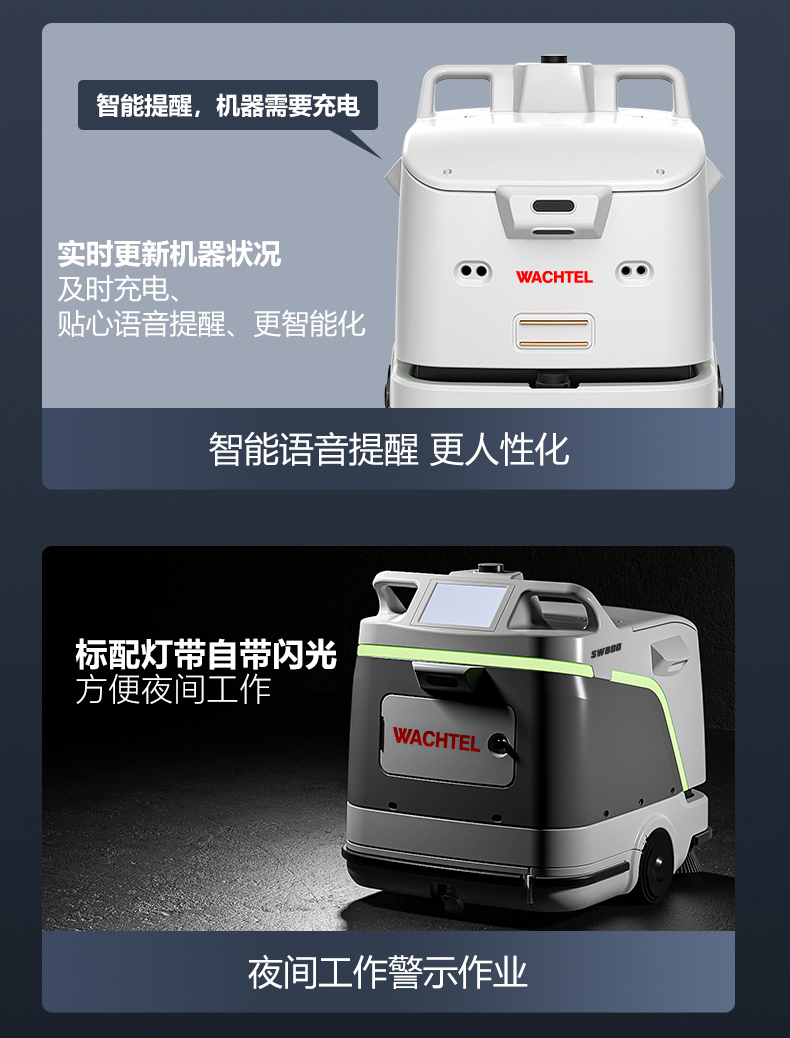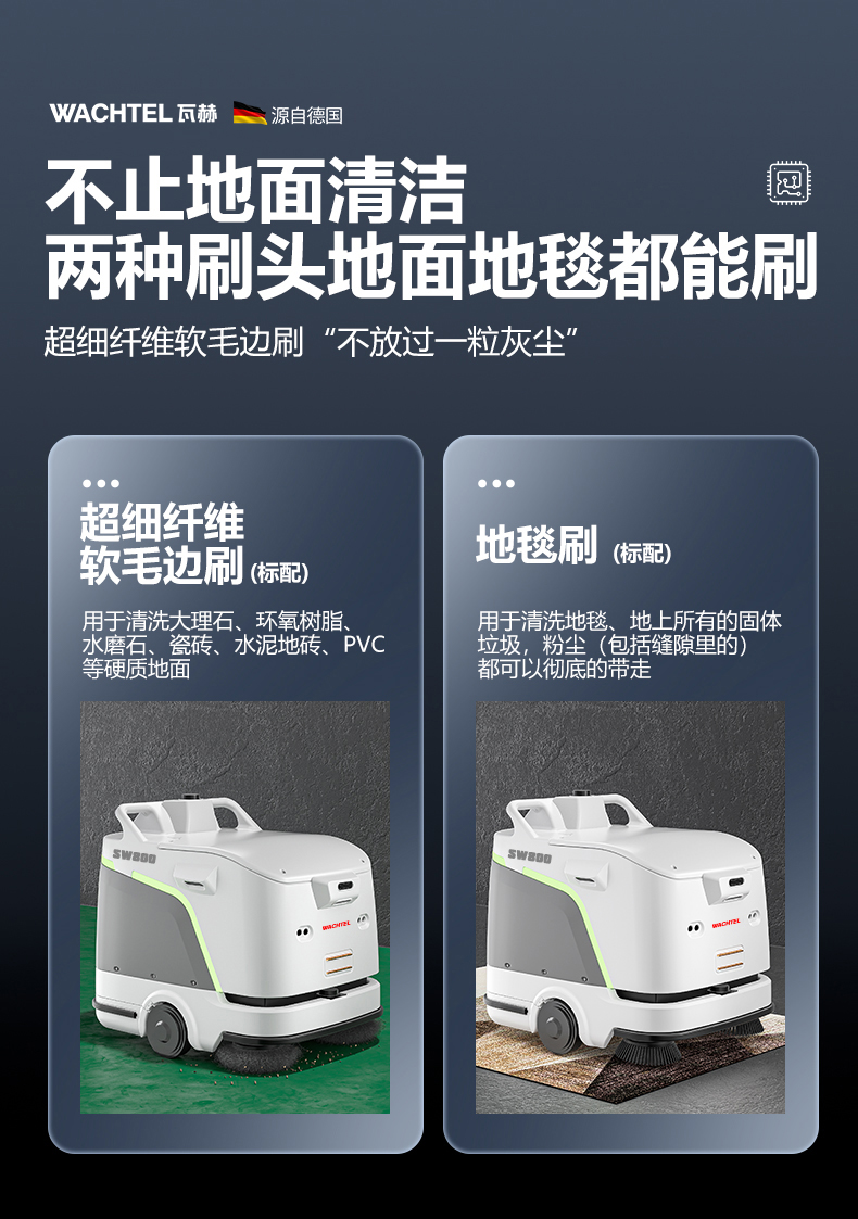 品牌:WACHTEL 名稱:掃拖吸一體智能機(jī)器人 型號(hào):SW800 功能:掃地+洗地+吸塵+塵推 特點(diǎn):自動(dòng)充電+自動(dòng)避讓+自動(dòng)乘梯+斷點(diǎn)續(xù)掃 控制方式:自動(dòng)/人工 外觀尺寸: 1020*847*915mm 充電樁尺寸:430*290*440mm 清潔寬度:600 mm 塵推寬度:800 mm 清潔效率:2300m²/h 工作時(shí)間:4h 工作噪音:≤63dB 電池:24V/50AH/100AH鋰電池 重量:150kg 防護(hù)措施:激光雷達(dá)+超聲探頭+深度攝像頭
