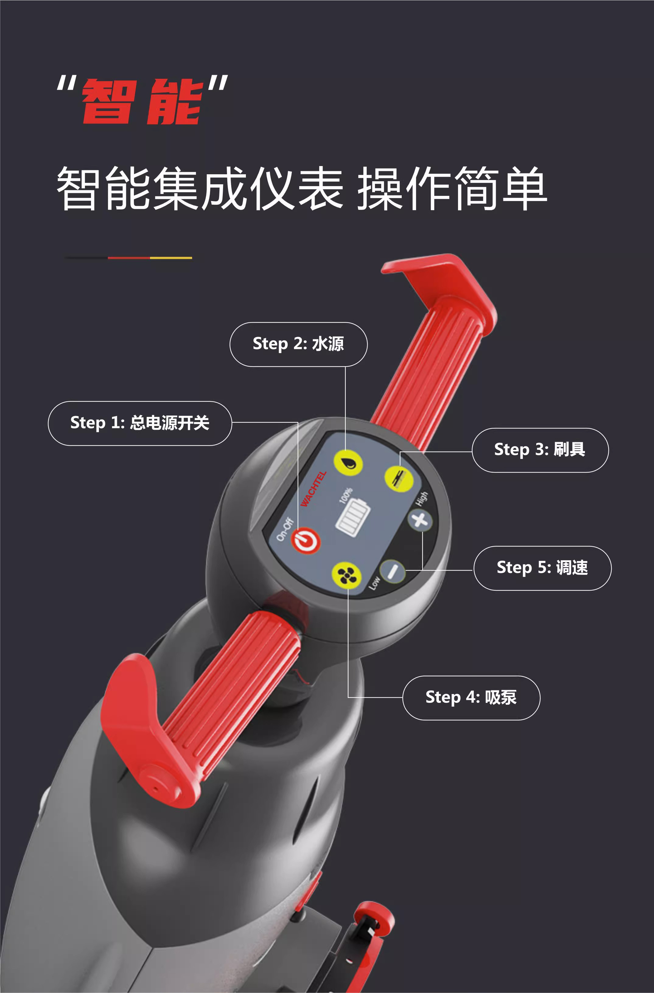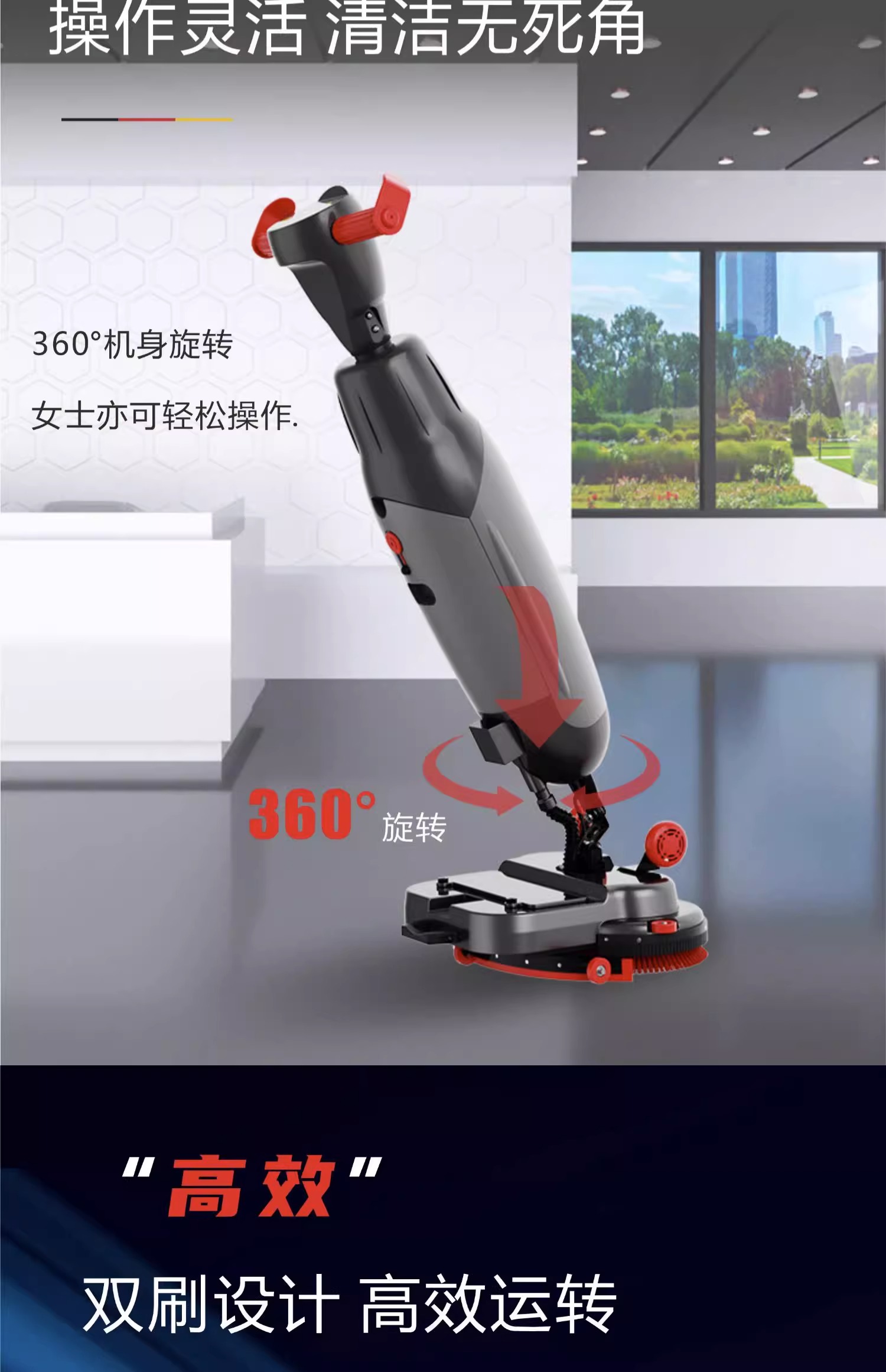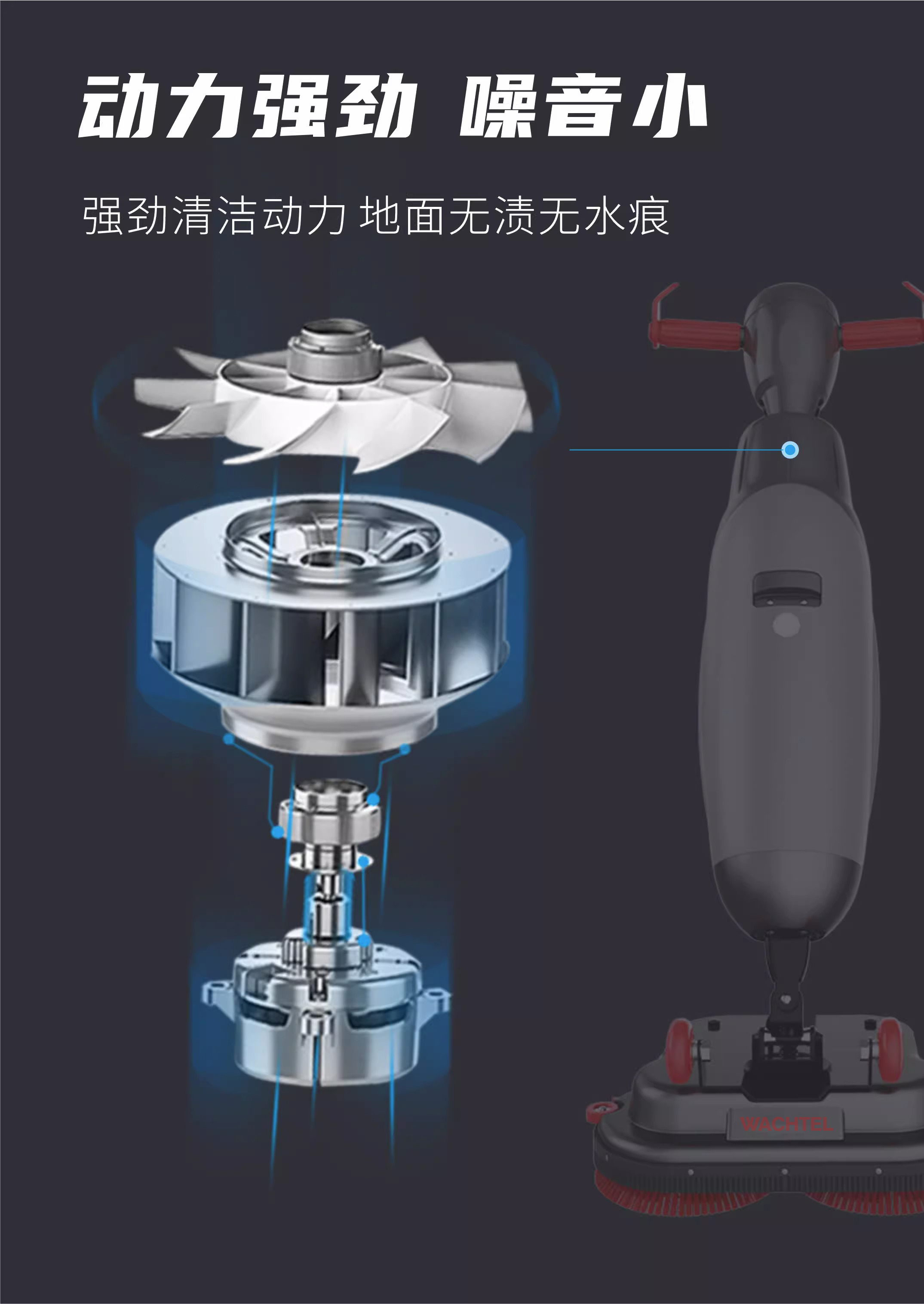 品牌:WACHTEL 名稱:小型便攜式洗地機 型號: SX430 清掃寬度:430 mm(雙刷盤) 清潔效率:1200m²/h 工作時間:1.5h 水箱容量:4L/6.5L(清/污) 電池:意大利OM鋰電 電機::德國瓦赫電機 整機重量:18.4kg 產品尺寸:450*438*1180mm 適用清潔場所: 商場 超市 車庫 車間 辦公樓等